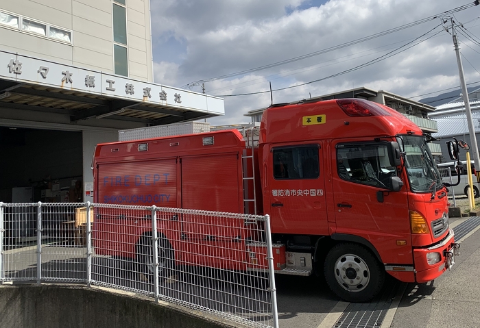 先日、更新した避難経路図の確認もかねて、消防署の方にお越しいただき、本社工場にて火災が起きた事を想定とした避難訓練を行いました。
