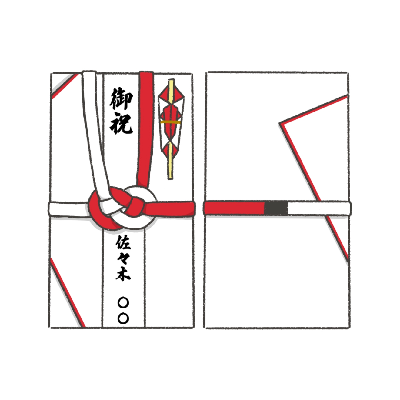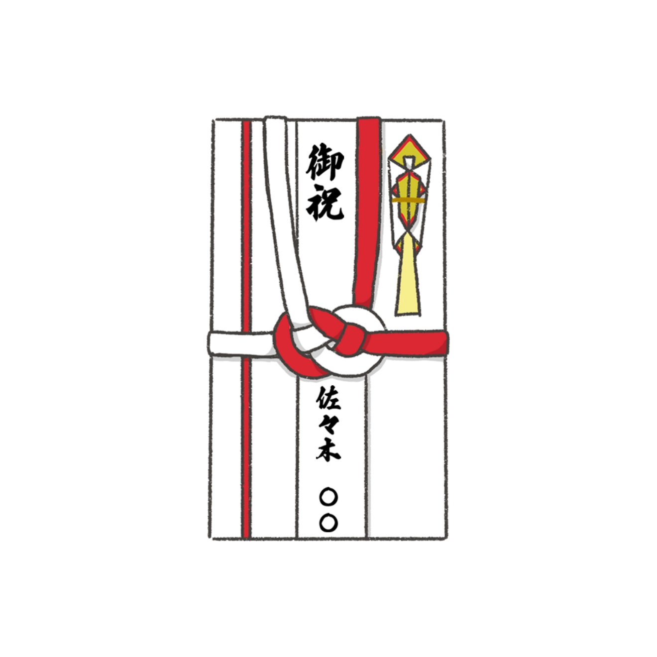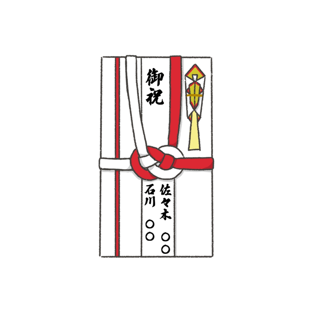 出産や七五三、入園・入学といった一般のお祝いを包む際には、熨斗の付いた祝儀袋を用いることが一般的です。昔ながらの水引付きの祝儀袋もしくはそれを模した絵柄が印刷されているものをお使いになる場合は、水引の色が赤白で結び方が「あわじ結び」もしくは「蝶結び」のものをお選びください。ただし、蝶結びの水引は「何度あってもいい」お祝いの際にのみ使用されるものですので注意が必要です。