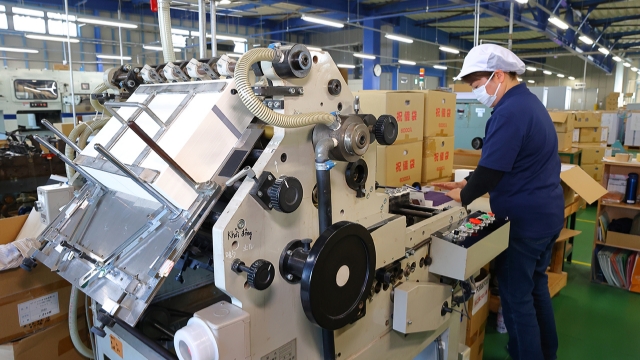 シール貼りやポリ袋入れ、検品など様々な作業をする工程です。一部内職加工は、自社で管理運営しています。